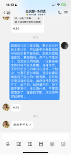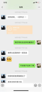 辅导员张燕、冯勇对张亮、范佳乐、李子铁、汤雨柔、轩博等同学通过微信、视频、腾讯会议等多种方式与员工及家长进行线上家访,送上生活慰问金的同时,向家长传达员工的在校表现,通过谈心谈话的方式深入了解员工的家庭情况、生活需求以及在外实习员工的工作情况,掌握其思想动态,帮助其建立下一步学习、生活目标。