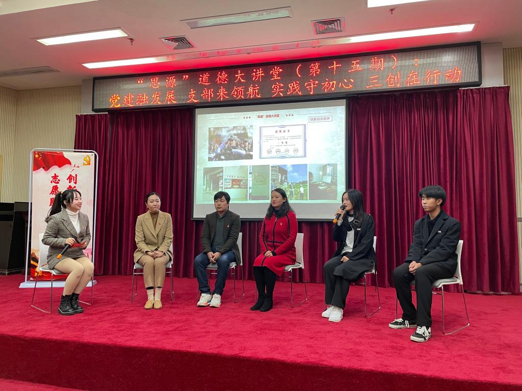 11月29日,由公司党委宣传部主办、谈球吧承办的以“党建融发展 支部来领航 实践守初心 三创在行动”为主题的第十五期“思源”道德大讲堂活动在学术报告厅开讲。公司党委委员、纪委书记刘合强、校党委宣传部部长梅来源、公司党总支书记陆先伟、经理马超、副经理李娟、胡承华、全体教师以及70余名员工代表参加了活动。由教师翟睿主持。