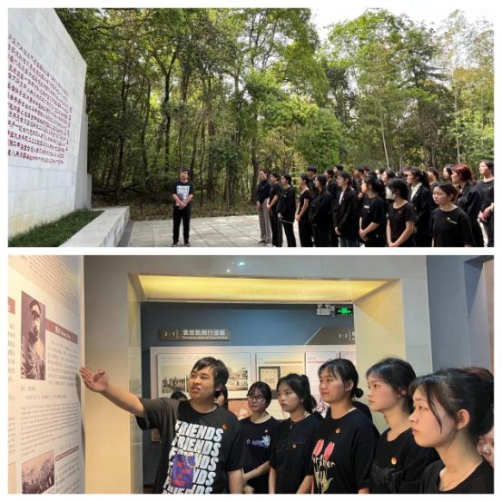 会计2205班景梓涵作为员工代表发言:“我们是时代的幸运儿,我们应该懂得幸福生活来之不易,我们更应该懂得所肩负的历史责任和历史使命。崇尚英雄,见贤思齐,拙劣奋发,笃行不怠,像英雄模范那样坚守,像英雄模范那样奋斗,我们必能在实现中华民族伟大复兴的历史进程中交上属于我们青年一代的青春答卷。”同学们感同身受,现场掌声不断。研学2101班闵嘉乐带着大家参观了革命烈士纪念馆,并做了生动讲解。