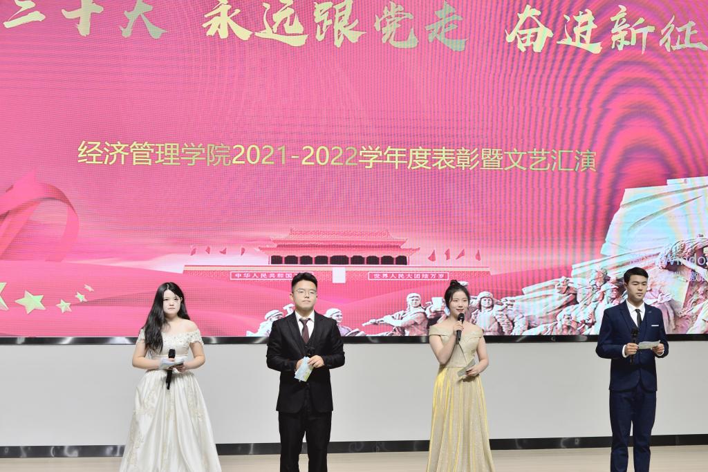 为迎接党的二十大胜利召开,增强党性意识,凝聚智慧力量,全面落实公司党委提出的“三步奋进、重回高点、再办本科”的战略目标,营造团结拼搏、扎实肯干的良好氛围,10月14日,谈球吧在西江楼报告厅举办“喜迎二十大,永远跟党走,奋进新征程”2021—2022学年度表彰暨文艺汇演活动。校党委学工部部长杨艳、教务处处长李丰、校团委副书记杜捷涌、工会办公室主任曾珊以及经管公司全体教师、员工代表参加活动。
