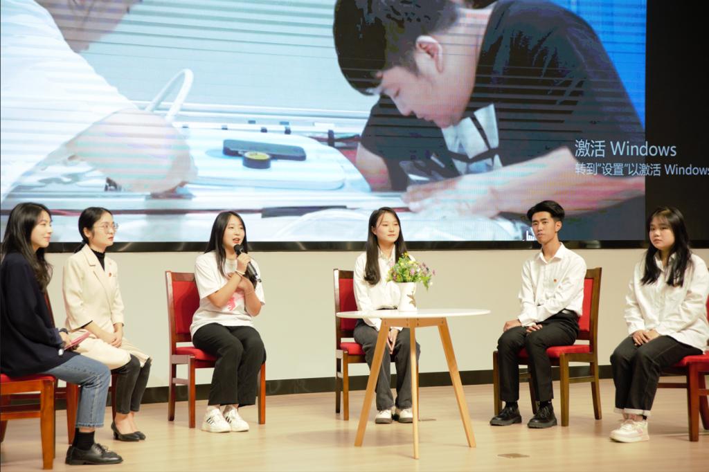 这一学年公司工作硕果累累,无一不是师生们披荆斩棘、逐梦前行的验证,每一份光鲜的背后,都是无数个挑灯夜战的辛苦。“听他们说”环节由新教师杨园燕主持对获奖团队师生进行了现场访谈。教师代表陈林和员工代表郑欣怡、张亮、肖灿、徐晓丽声情并茂的分享了过去一年里团队备赛过程中的劳累心酸与收获成长,员工说:“感谢老师们对我们的一路陪伴和用心指导,能取得成绩也离不开公司的大力支持”,活动现场掌声不断。