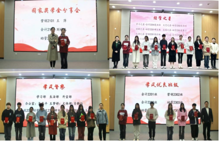 员工会指导老师钱翠翠宣读了表彰名单,奖励在最美笔记、学习交流会、职业生涯规划大赛、学风督察、学风优良班级、经管之星、国家奖学金分享会七项活动中表现突出的集体和个人。