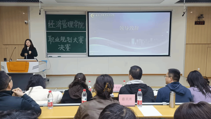 贾书媛作开场致辞,她指出,职业规划大赛是链接校园与职场的桥梁,是同学们展示自我,交流学习的平台,希望同学们能够有针对性地学习职业规划知识、锻炼职业规划技能,以科学职业规划和择业新观念打开职场大门。