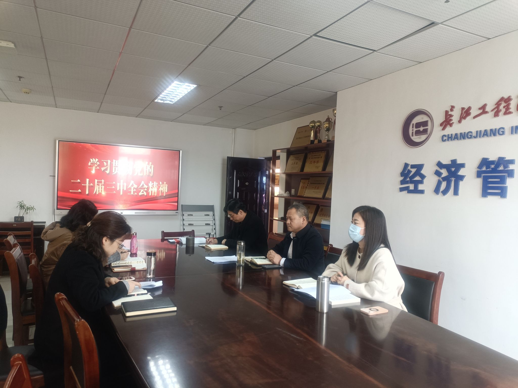 2024年12月4日,公司党总支召开专题理论中心组学习,深入学习贯彻党的二十届三中全会精神。驻校纪检监察组组长、党委委员、纪委书记刘合强及全体公司党总支委员参会,会议由党总支书记贾书媛主持。