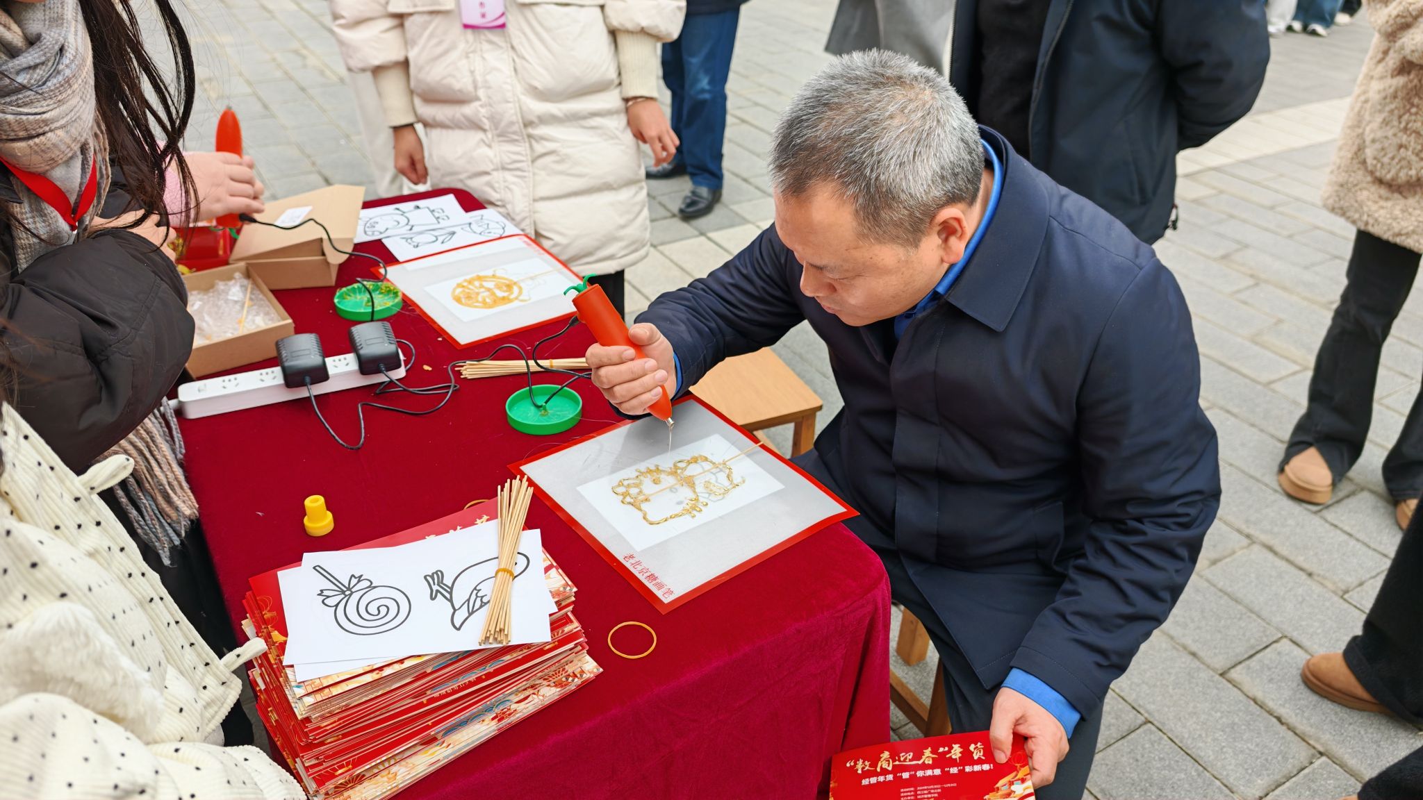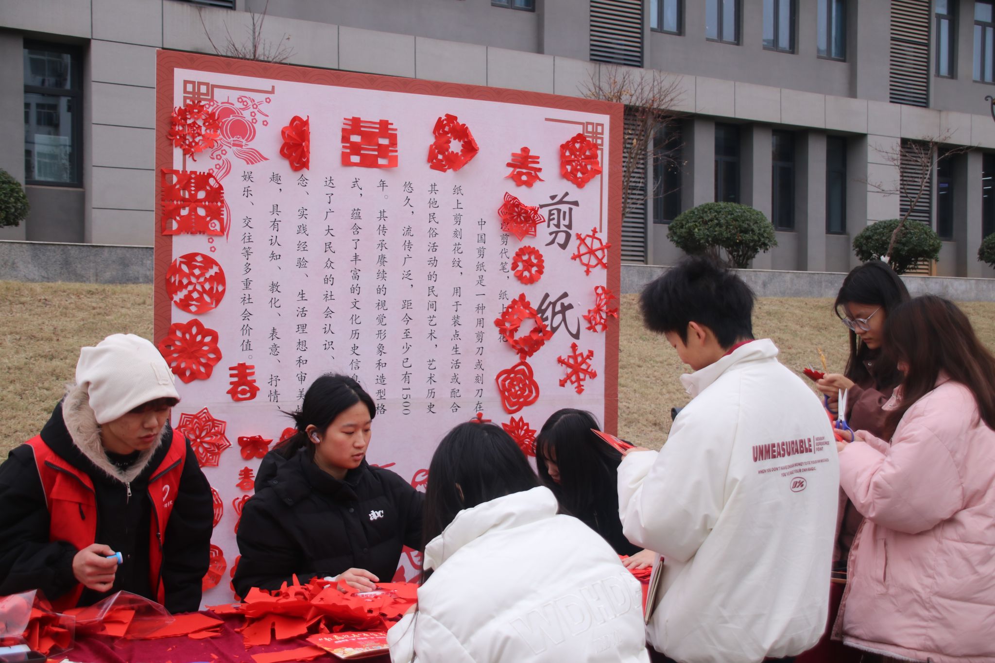 活动现场设置投壶、剪纸、画糖人、踢毽子等四项中国传统文化游戏,活动参与者通过打卡游戏任务集印章兑好礼,老师与同学们一起参与到游戏当中,现场气氛热烈、笑声连连。