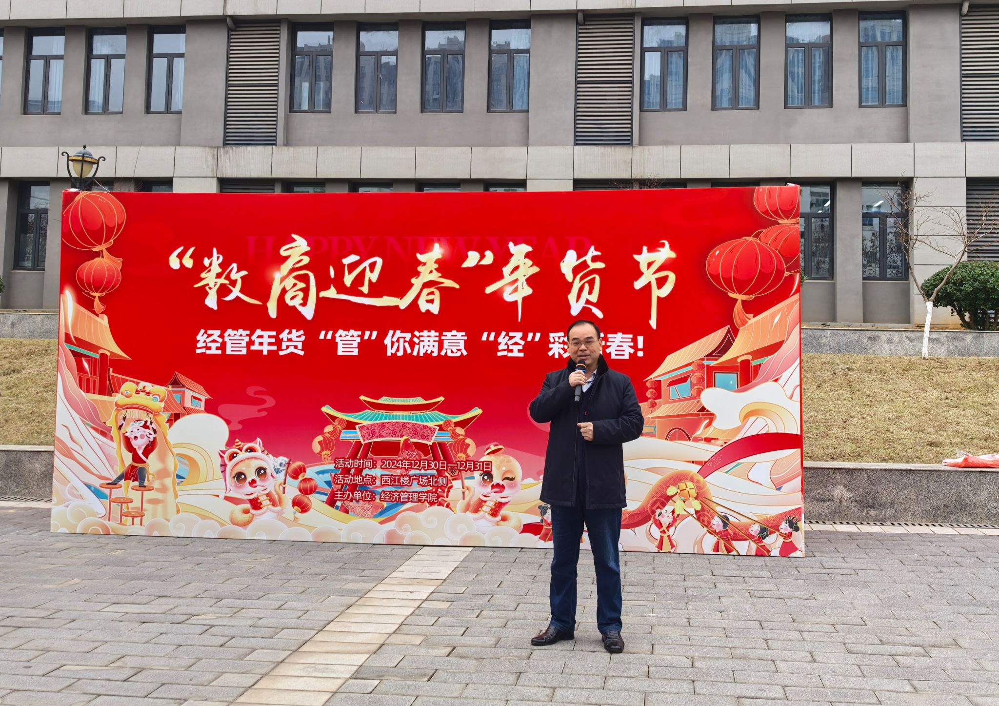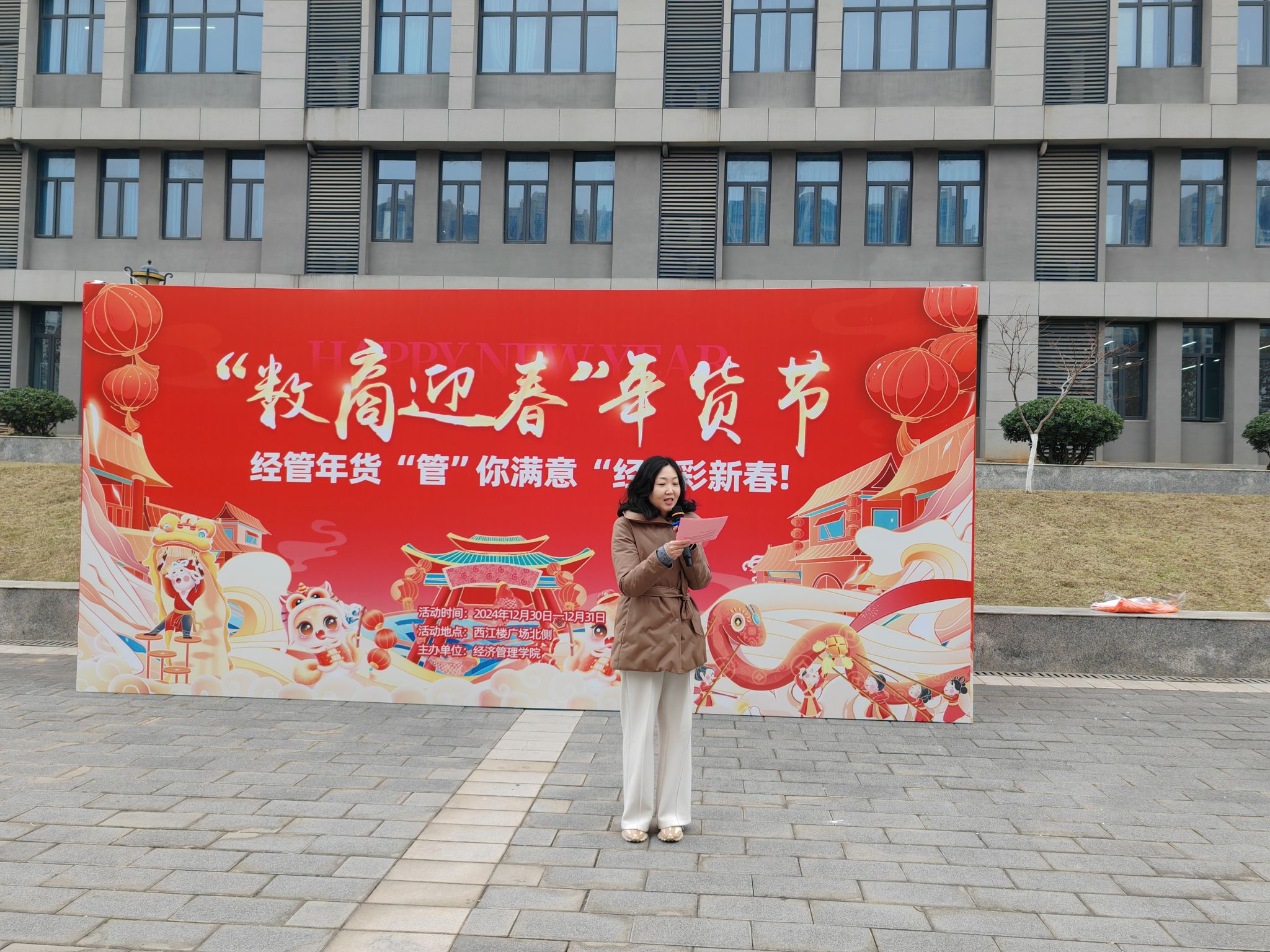 为响应国家关于发展数字经济、促进消费升级的号召,同时丰富校园文化生活,弘扬中华优秀传统文化。12月30日至31日,谈球吧主办的“数商迎春”年货节在西江楼北侧广场成功举办,党委书记向家文,省纪委监委驻校纪检监察组组长、纪委书记刘合强,党委宣传部部长曹冬红,谈球吧经理马超、党总支书记贾书媛莅临本次活动。活动由谈球吧副经理熊俐主持。