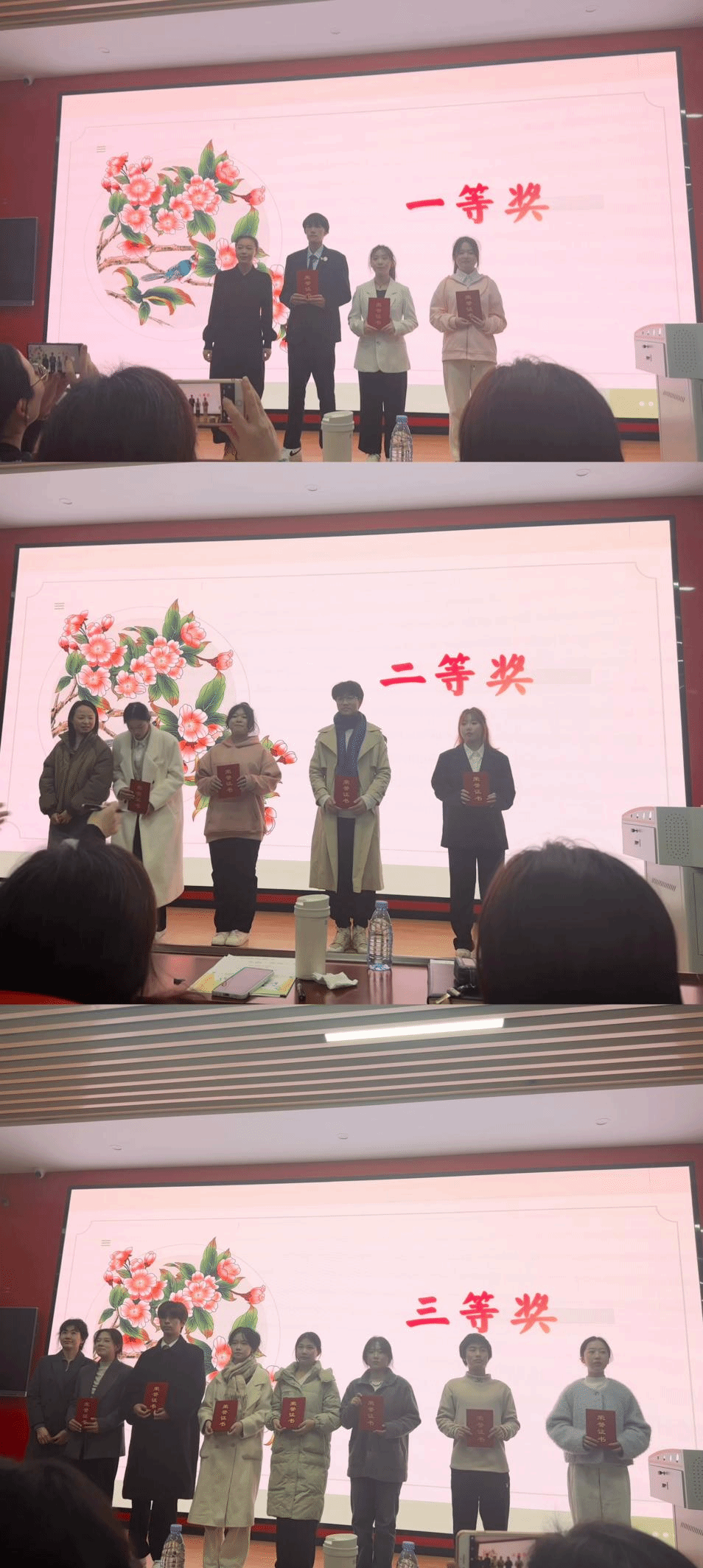 由熊晓艳老师指导的会计2404班参赛作品《阳光心灵,快乐成长》在一众选手中脱颖而出,荣获一等奖;翟睿老师指导的旅游2401班《种自己的花,和自己拥抱》荣获二等奖;刘建发老师指导的会计2402班《人际魔法秀,青春乐无忧》、翟睿老师指导的旅游2402班《为心灵减压,为成长赋能》分别获三等奖。