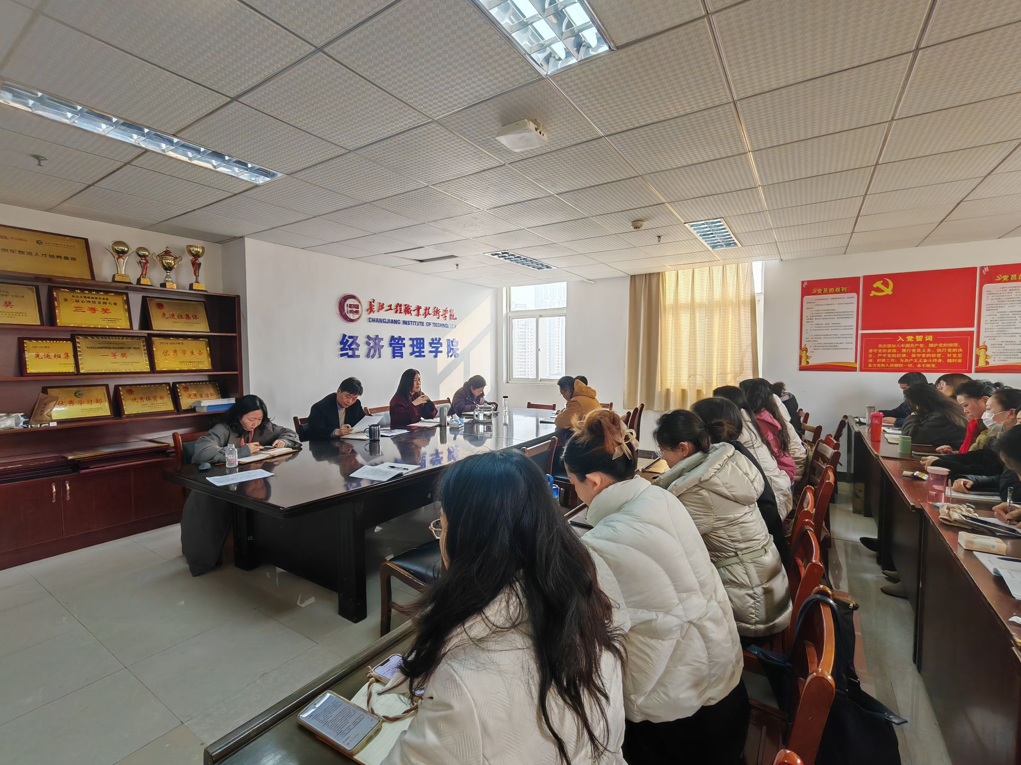随后,贾书媛带领全体教师回顾了上一学年公司在教师教学能力提升、产教融合等方面取得的成绩。对全体教职工的辛勤付出给予了充分肯定。她指出当前职业教育正处于快速发展和深刻变革的关键时期,机遇与挑战并存,公司必须紧跟时代步伐,以改革创新为动力,全面提升职业教育的内涵和质量。
