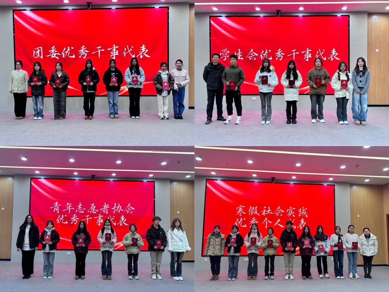 分团委书记杨园燕宣读上一年表现优异的团学志自干事及寒假社会实践先进个人名单,到场老师们为获得表彰的先进员工颁发荣誉证书,现场气氛热烈,掌声不断。