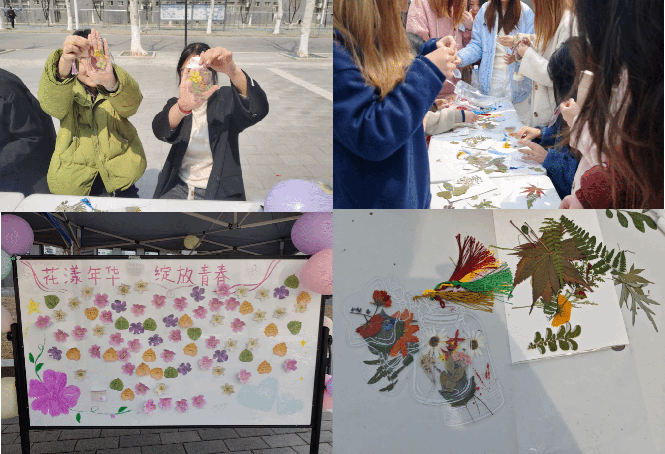 活动现场,同学们以干花、树叶为素材,在精心设计的书签底板上进行创作,将自然之美凝聚成独一无二的艺术品,大家将亲手制作的鲜花书签赠予在场女教师,以表敬意与祝福,师生欢声笑语不断。“花漾年华,绽放青春”主题展板前温情涌动,师生们通过五颜六色的便利贴书写祝福,咏赞女性的智慧与奉献精神。