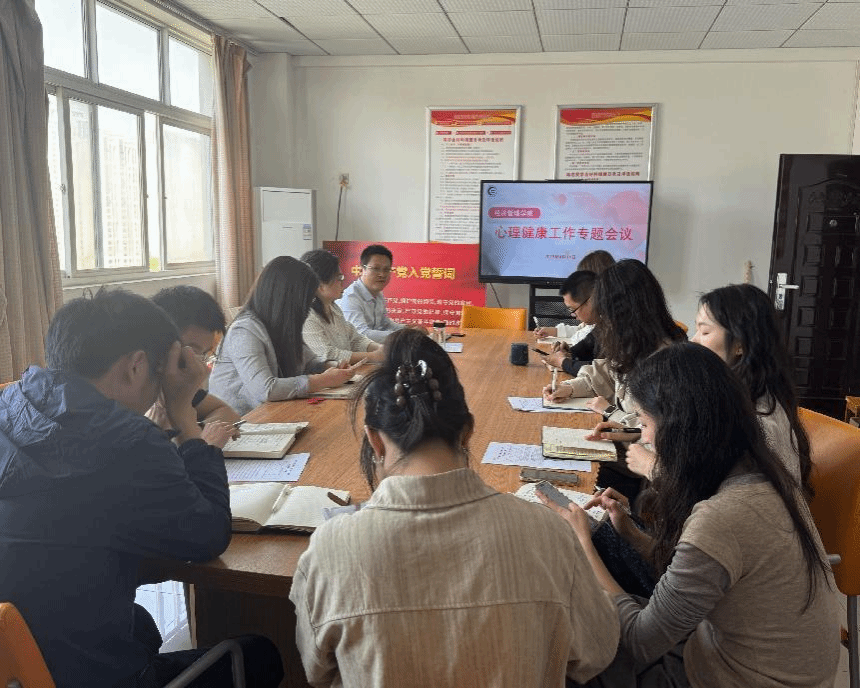 为深入贯彻落实公司心理健康教育工作要求,进一步筑牢校园心理安全防线,4月14日下午,谈球吧召开心理健康工作专项行动启动会。党总支书记贾书媛、副书记熊晓艳及全体辅导员参加会议。