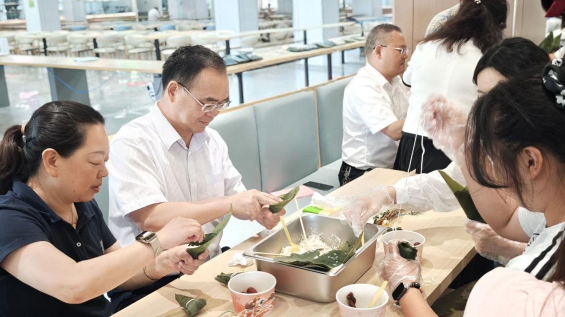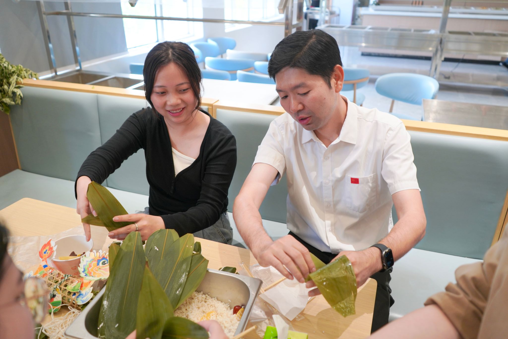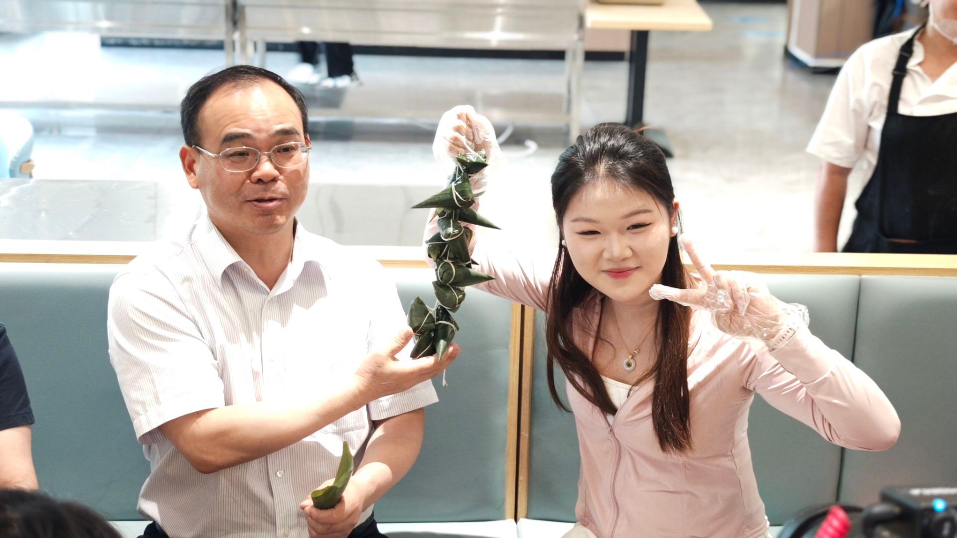活动现场,市场营销专业员工肖静怡激动地分享了她的感受:“太惊喜了!中午刚收到公司发放的端午爱心礼包,下午又能和老师们一起动手包粽子、聊家常, 特别温暖和开心!公司不仅关心我们的学习生活,连传统节日都安排得这么用心,这份关怀真的像粽子一样,甜到心里去了。”