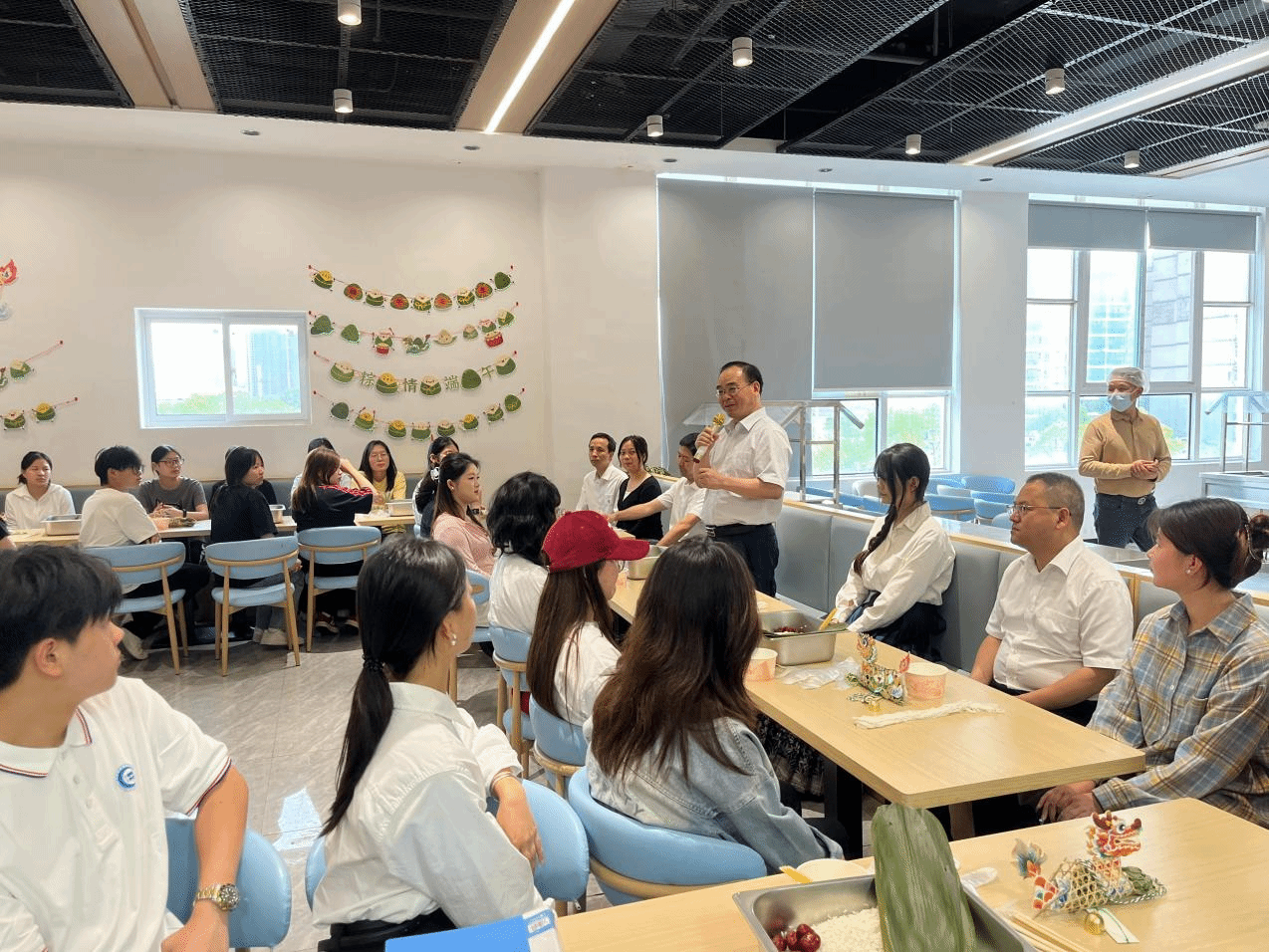 篝火之声粽香浓,师生共赋端午情。为弘扬中华优秀传统文化,营造温馨祥和的节日氛围,5月28日下午,在党委员工工作部、后勤管理处的大力支持下,谈球吧在知辛堂二楼开展了篝火之声—我们的节日之“粽情端午,悦享佳节”实践教育活动。党委书记向家文,省纪委监委驻校监察组组长、纪委书记刘合强,党委委员、副董事长卢俊莅临活动现场,师生共庆端午佳节,传递公司的亲切关怀与节日问候。