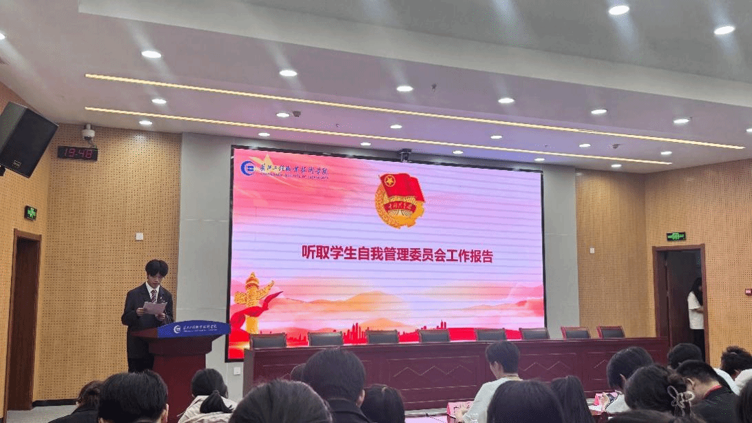 自管会副会长吴康平作工作报告。他从“自律为根”“自强为魂”“自立为本”“自信为翼”四个方面展开汇报,回顾了过去一年来自管会所开展的工作及取得的成绩。