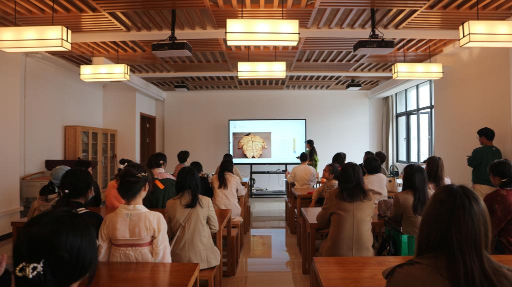 江夏区“字言纸语”非遗馆馆长、江夏纸坊古法造纸非遗项目传承守护人易文倩通过讲授及互动结合的方式带领大家了解了纸的发展史、纸的种类、古法造纸的八大流程,展示了花草纸的制作方法。