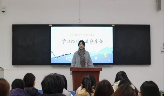 22级的明娟、饶信楠等四名同学进行经验分享。她们表示,作为学习委员,要时刻保持对学习的热爱和追求,以身作则,带动同学们形成良好的学习习惯;交流环节中,同学们积极提问,现场气氛活跃,针对如何提高学习效率,如何帮助同学解决学习困难等问题进行积极探讨,还分享了一些学习方法,如巧妙运用记忆曲线等。