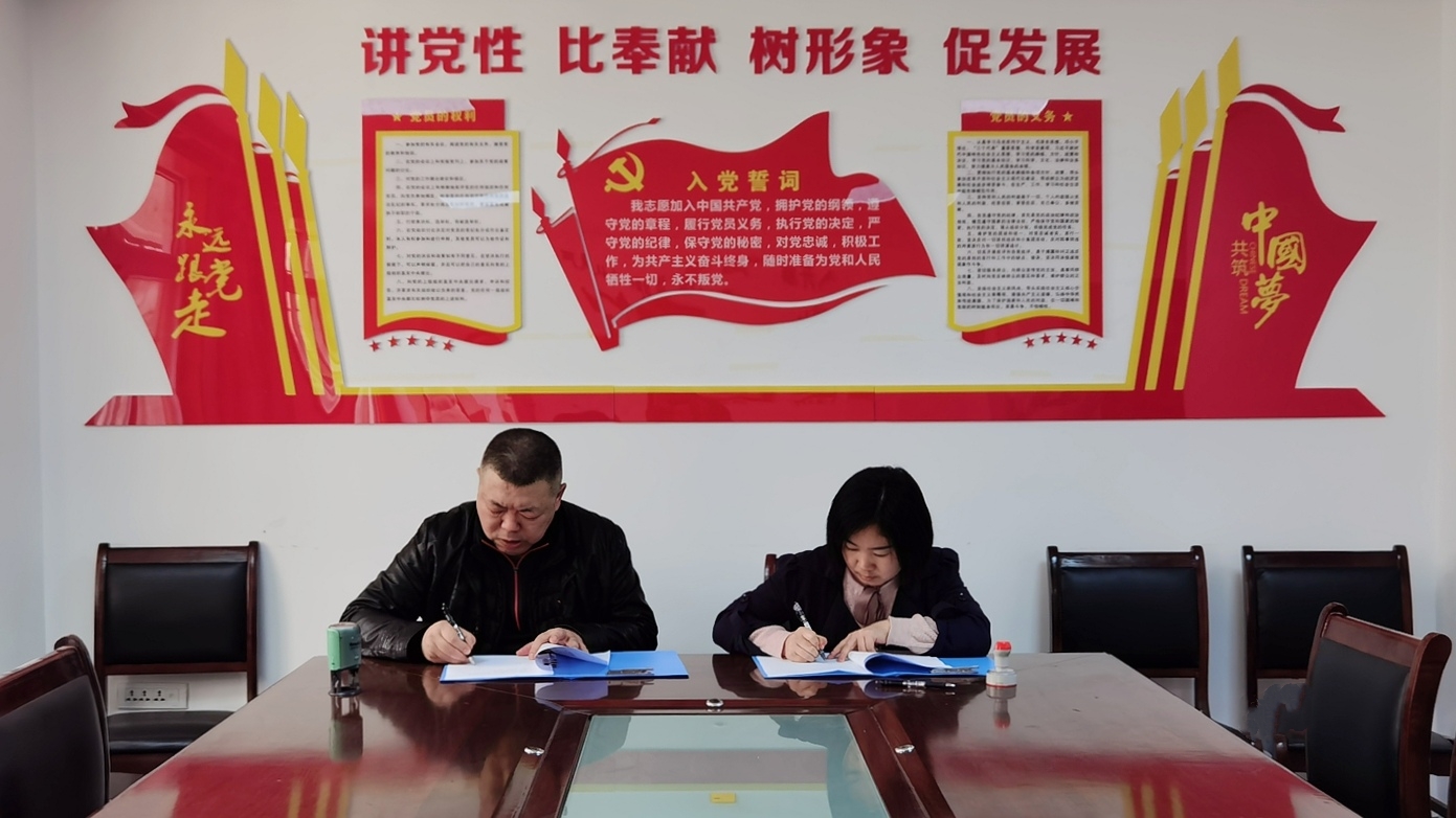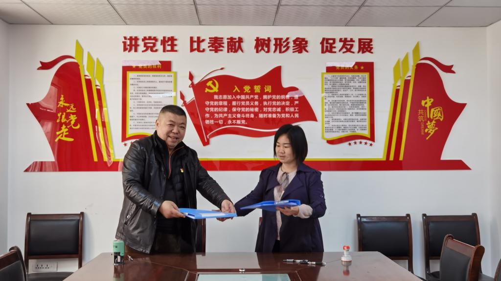公司党总支书记陆先伟、大桥社区秦琴主任签订协议书