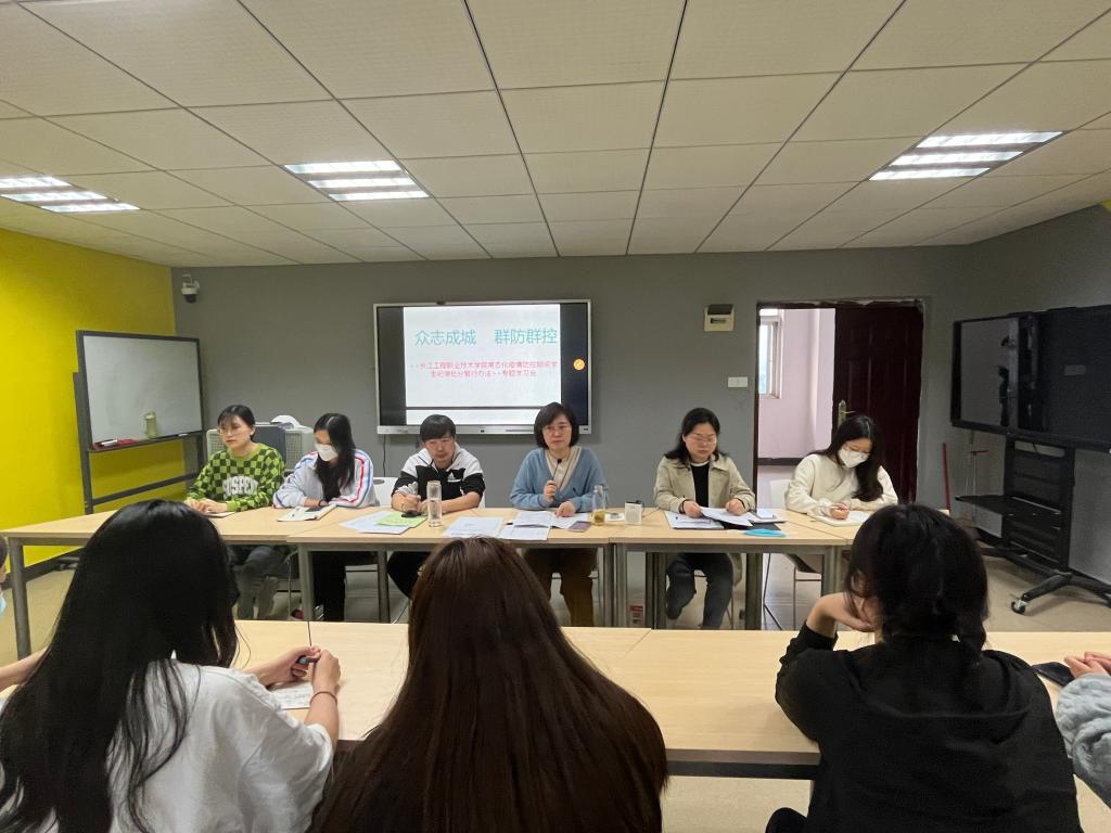 4月13日下午,谈球吧召集20级、21级全体团支部书记、院团委、员工会、志愿者协会的负责干部在长江楼1120开展疫情防控专题会,公司党总支书记贾书媛、副书记熊晓艳、团委书记冯勇参加会议。