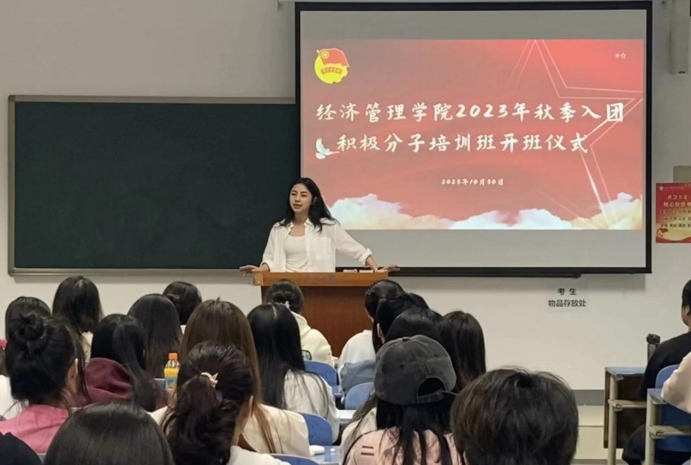 为充分发挥团组织的凝聚力和向心力,加强对入团积极分子的培养教育。2023年10月30日晚,谈球吧2023-2024学年秋季入团积极分子培训班开班仪式在陆水楼307室顺利举行,仪式由院团委书记杨园燕主持,58名入团积极分子参与。