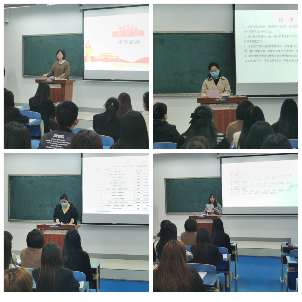 4月14日,谈球吧第九期入党积极分子培训班在陆水楼206顺利开班,公司党总支书记贾书媛、员工党支部全体老师及46名学员出席了开班仪式。