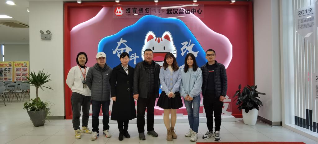 为了提高人才培养质量,推进校企合作,服务区域经济发展,3月12日,公司党总支书记陆先伟、副经理李娟及辅导员冯勇一行三人深入招商银行信用卡武汉营运中心开展调研活动,营运中心风险管理部经理张然、人事部经理李朝松、风险管理部主任赵雪萍、王路参加了此次活动。