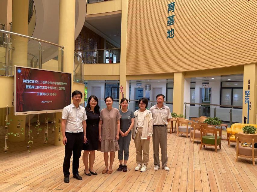 8月11日,谈球吧经理马超,副经理熊俐,教师朱田、姚蓝洁一行受邀到闽江师范高等专科公司三创公司考察交流。
