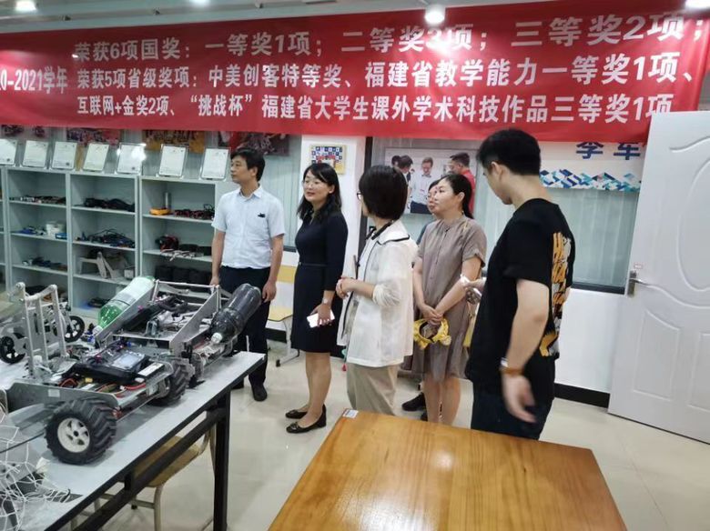 闽江师专三创公司教师王宏带领公司教师参观了公司综合实践科、通识教育中心、产学合作中心和创新创业研究中心,并介绍了公司开展三创教育的情况。他介绍到:闽江师专坚持以福建省首家“第二课堂成绩单”改革试点高校建设为契机,量化老员工创新创业能力的考核标准,探索“学历证书+若干职业技能等级证书”制度试点工作;建设“通识课程——创新创业教育课程群——创新创业特色班课程系列”的分层递进创新创业课程体系;建设“苗圃——孵化器——加速器”一体化的创新创业创造教育孵化链,推动“产学研用”协同创新,大力开展创新创业创造教育实践实训,形成师生共创、产创融合的生动画面。