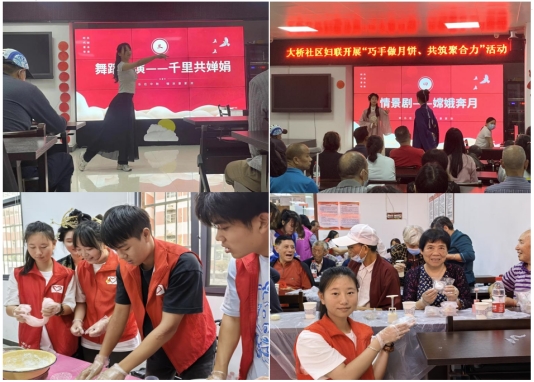 活动中,大桥社区60岁以上党员、公司党员教师、“海燕”志愿服务队的志愿者们汇聚一堂,动手制作纯手工中秋月饼,观赏了“小海燕”们的文艺节目:古典舞《千里共婵娟》、戏剧《嫦娥奔月》。活动让社区60岁以上党员、辖区失独老人,居委会小区居民过一个特别的“中秋佳节”。